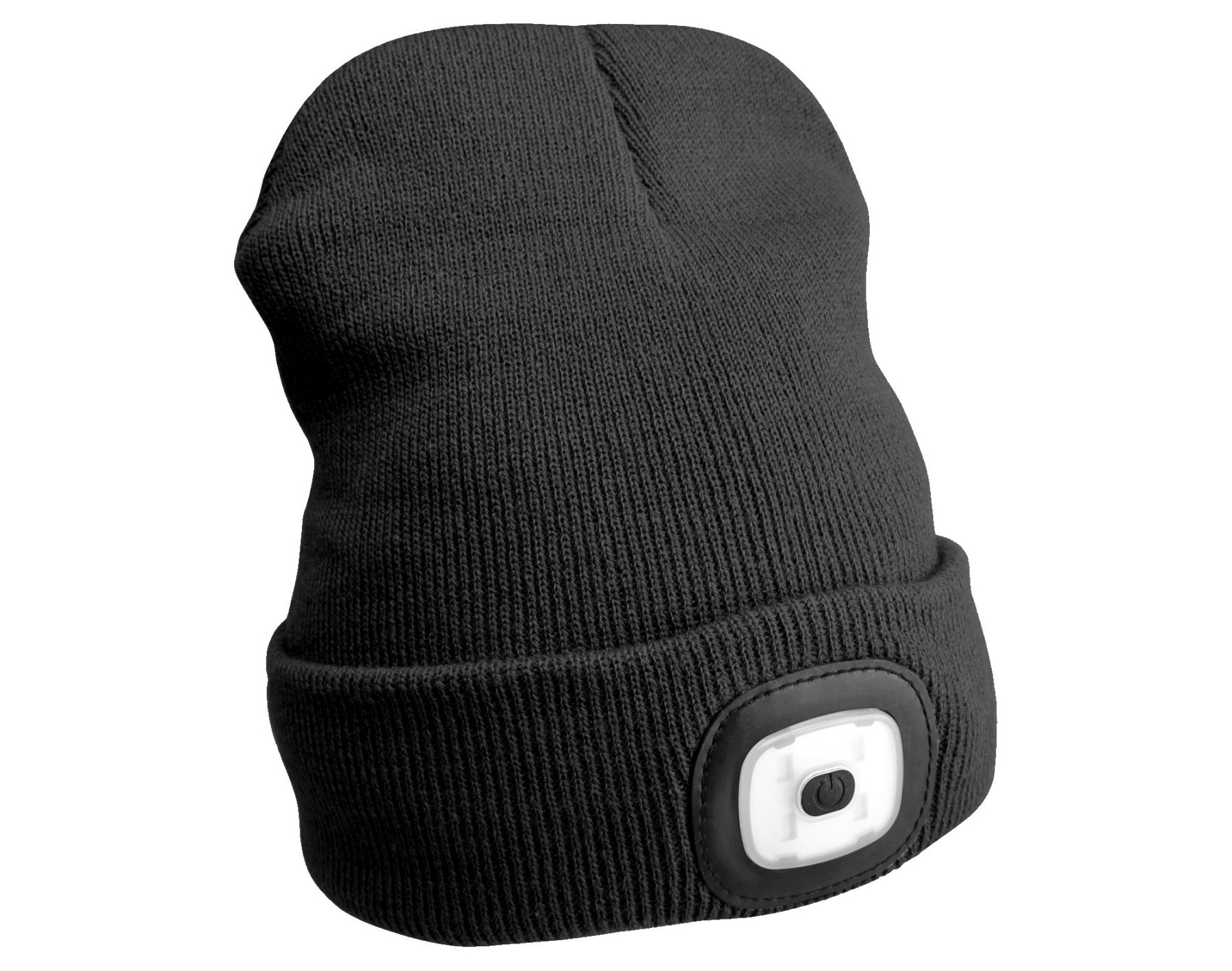 Bonnet avec lampe frontale 180 lm, rechargeable, USB, taille unique, coton/PE, noir