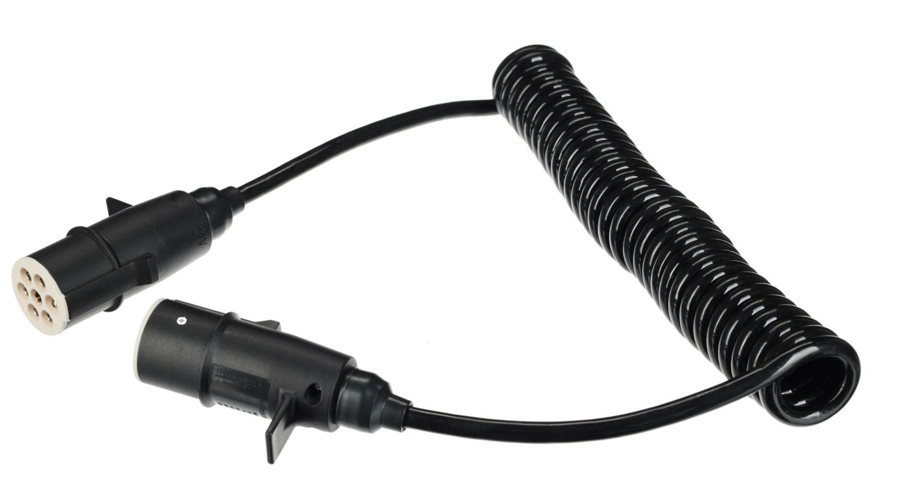 Câble spiralé de liaison 7 broches type S TRAILER CABLE 10, fiche en plastique, 24V, 3,5m SIXTOL