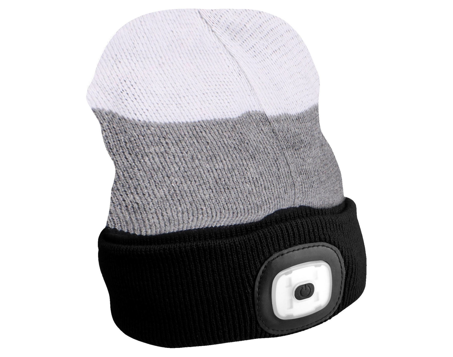 Bonnet avec lampe frontale 180 lm, rechargeable, USB, taille universelle, coton/PE, noir/gris/blanc SIXTOL