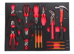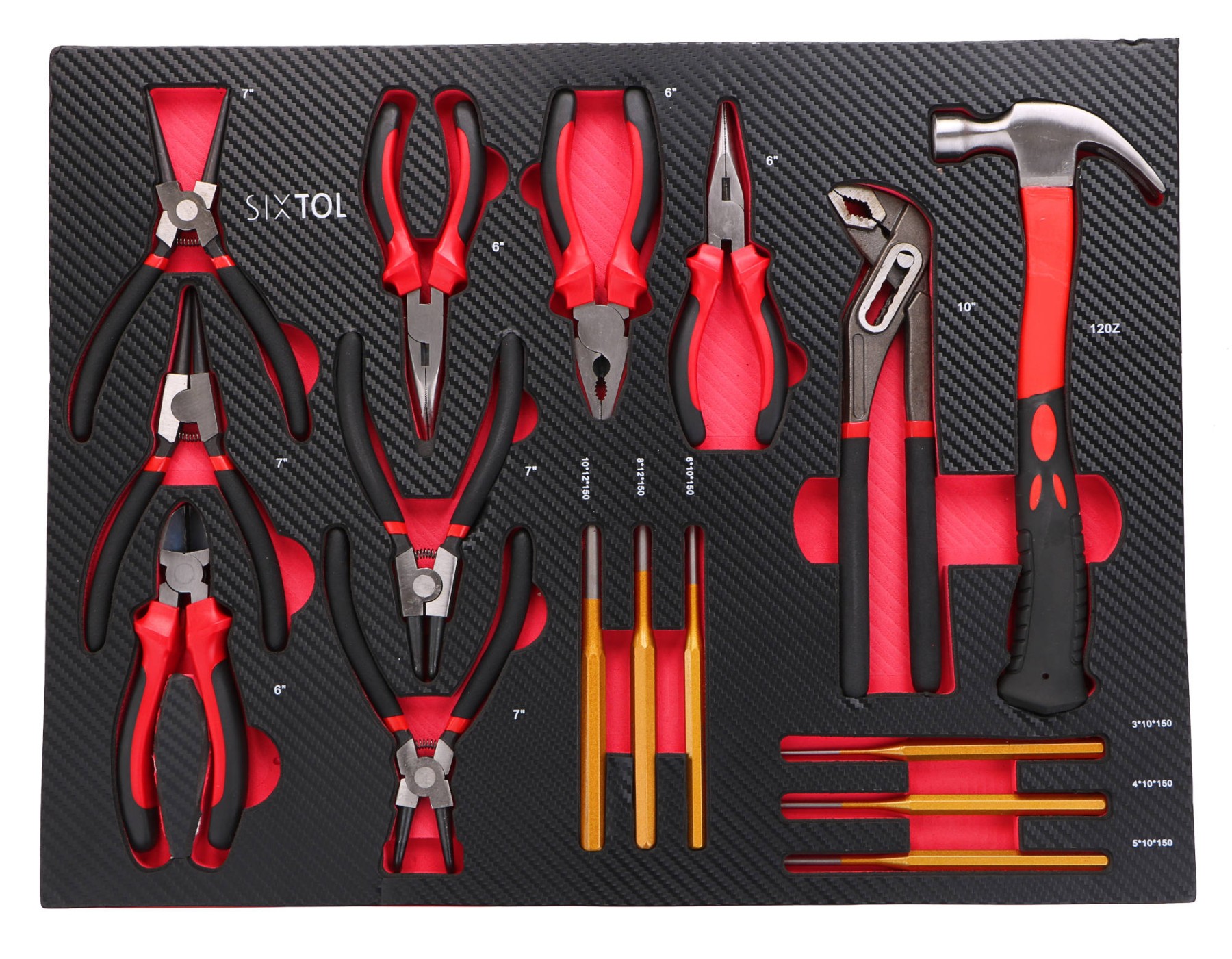 - 1x Clé dynamométrique 1/2" : Plage : 28–210 N·m- 2. Tiroir – 36x pinces et autres outils