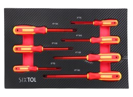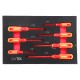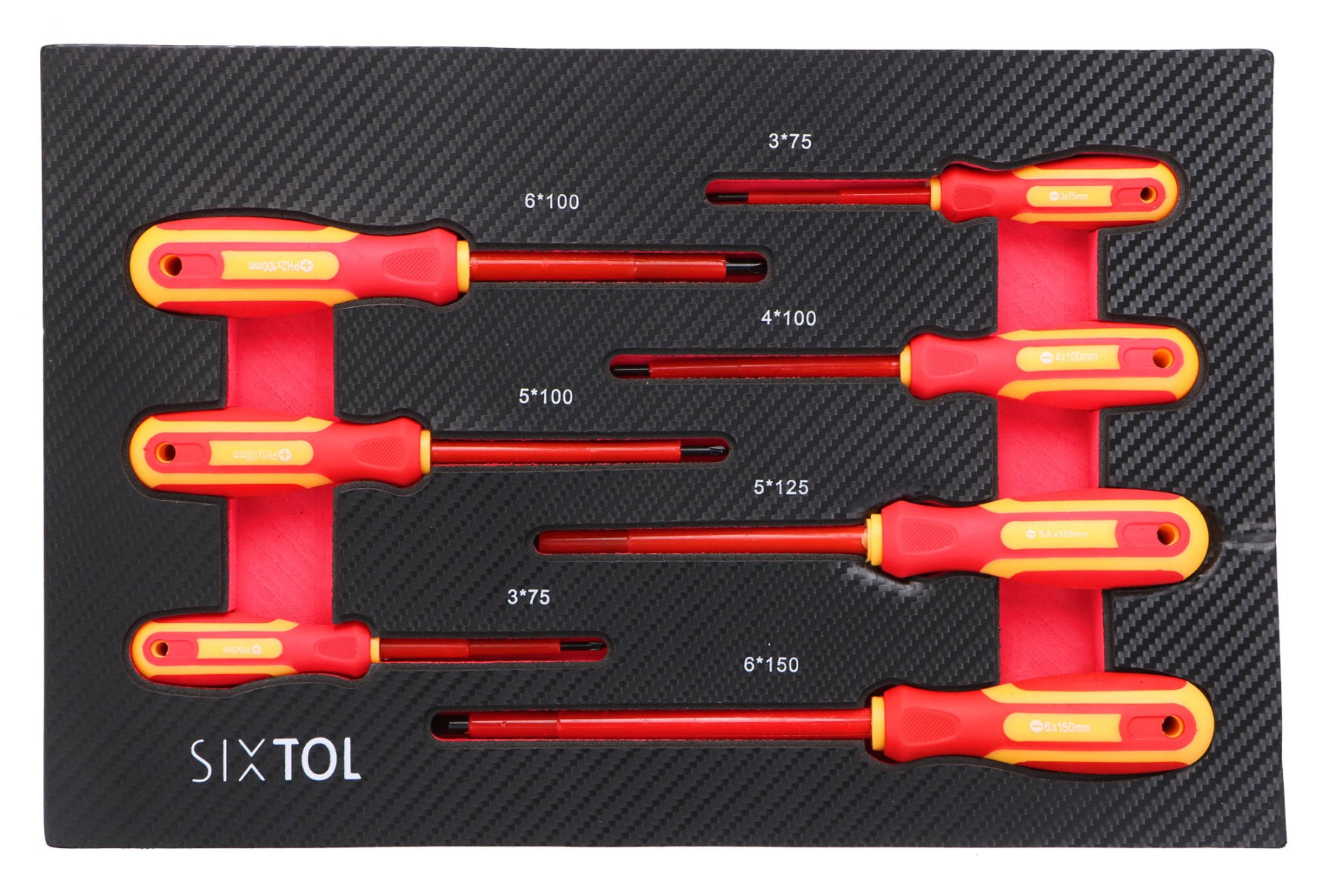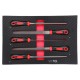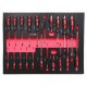 - 2x Tournevis de précision : SL3 × 100 mm (plat); PH0 × 100 mm (cruciforme)- 8. Tiroir – 7x tournevis isolés (pour électricien)