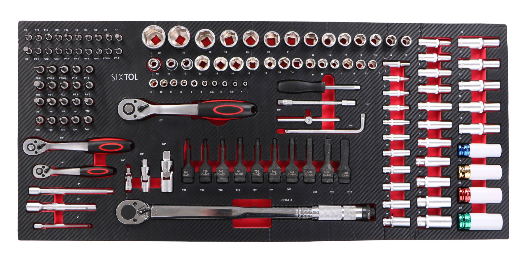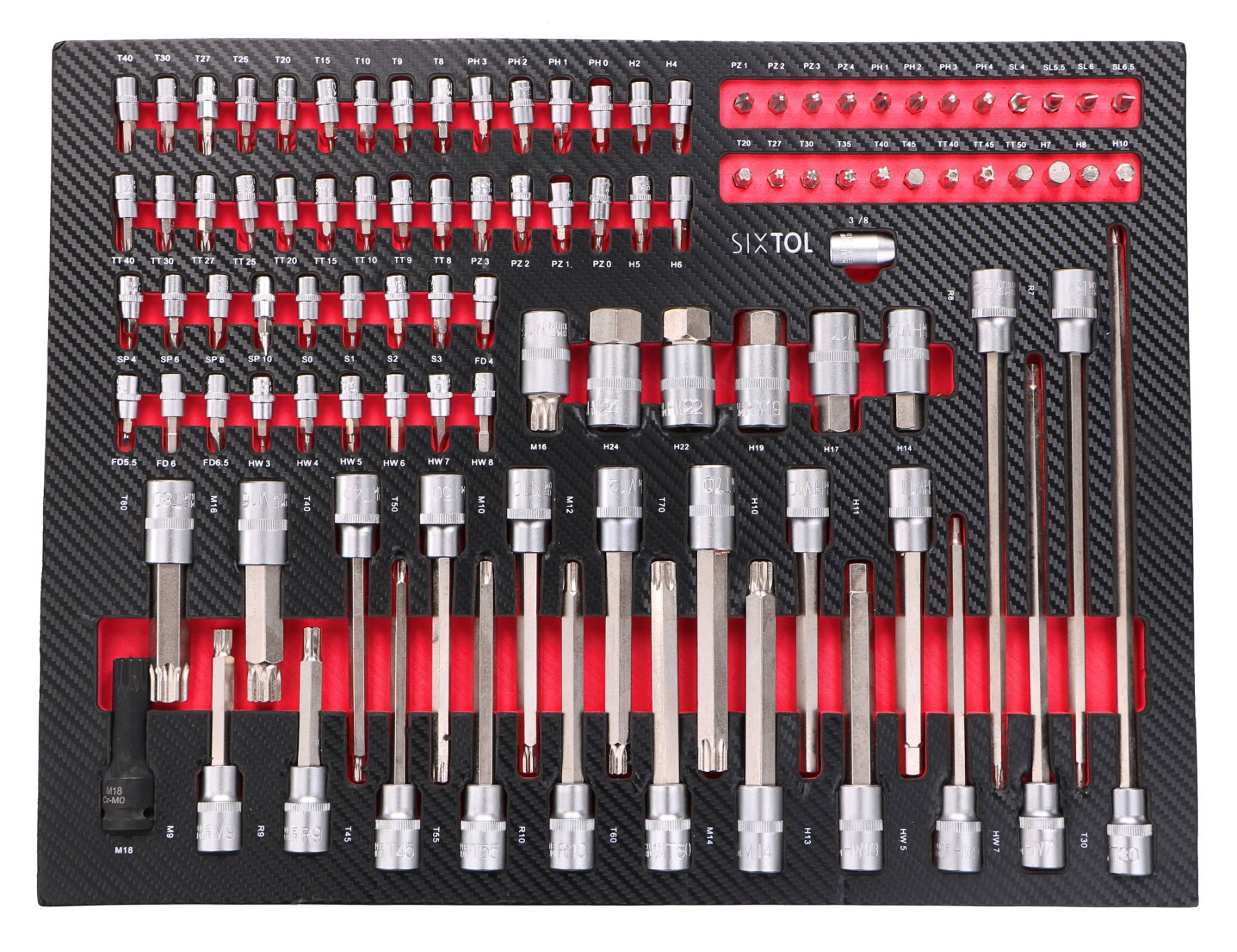 - Tailles : 6; 7; 8; 9; 10; 11; 12; 13; 14 mm- 5. Tiroir – 102x embouts et douilles