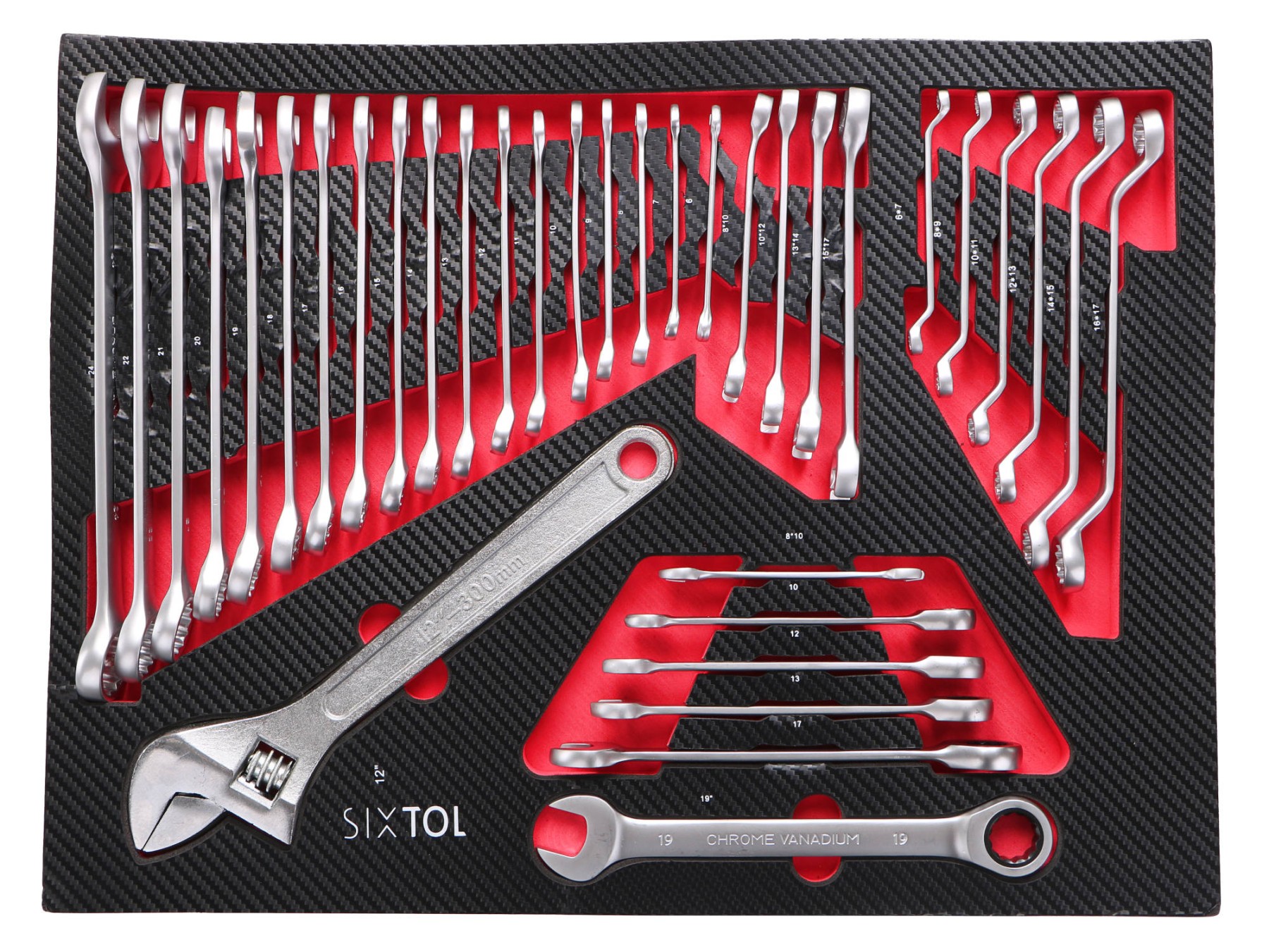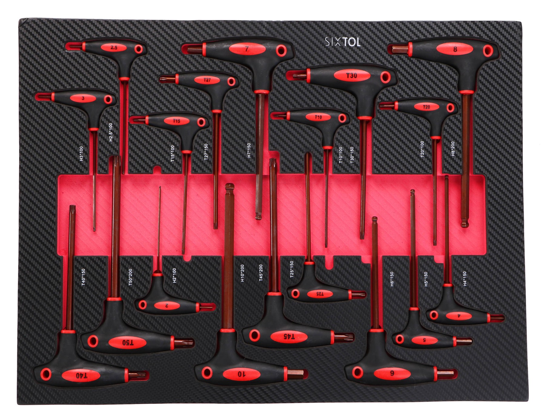 - 18x Clés mixtes Torx : 6; 7; 8; 9; 10; 11; 12; 13; 14; 15; 16; 17; 18; 19; 20; 21; 22; 24 mm