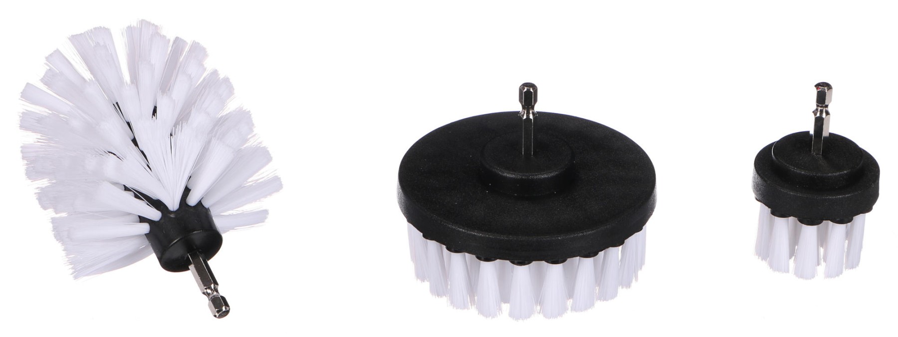 Le set de haute qualité DRILL BRUSH 3 SOFT de trois brosses rotatives douces pour perceuse est conçu pour le nettoyage des jantes, des dessous de châssis, des pièces de moteur et d'autres surfaces dures. Ce set comprend 3 brosses douces (blanches), utilisables non seulement pour le nettoyage des voitures, mais aussi pour le nettoyage de surfaces dures à la maison, comme les carreaux de cuisine et de salle de bain, les toilettes, les baignoires, les ateliers et les outils de jardin.