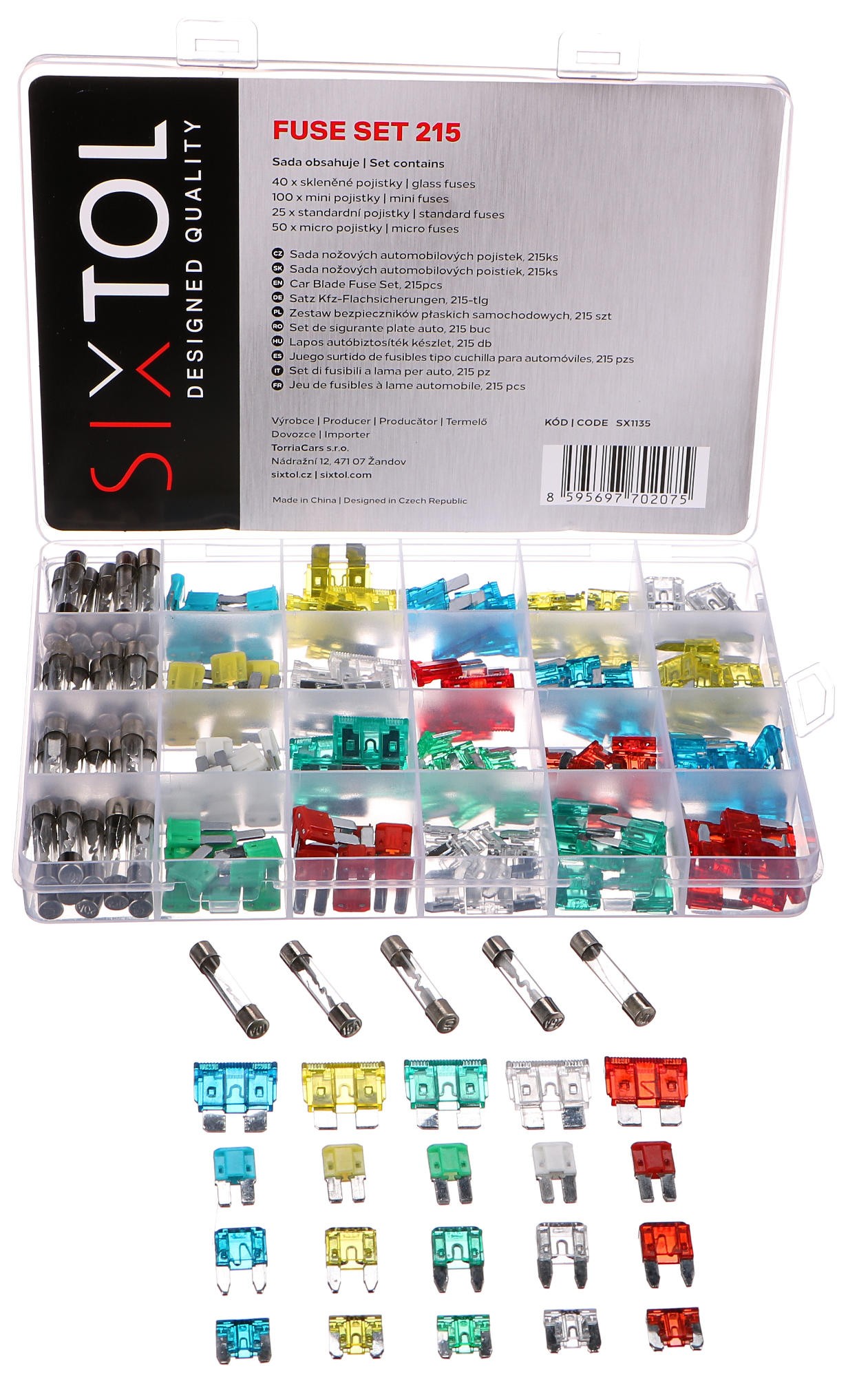 Ensemble de fusibles à lame et en verre pour automobile MECHANIC FUSE SET 215 SIXTOL