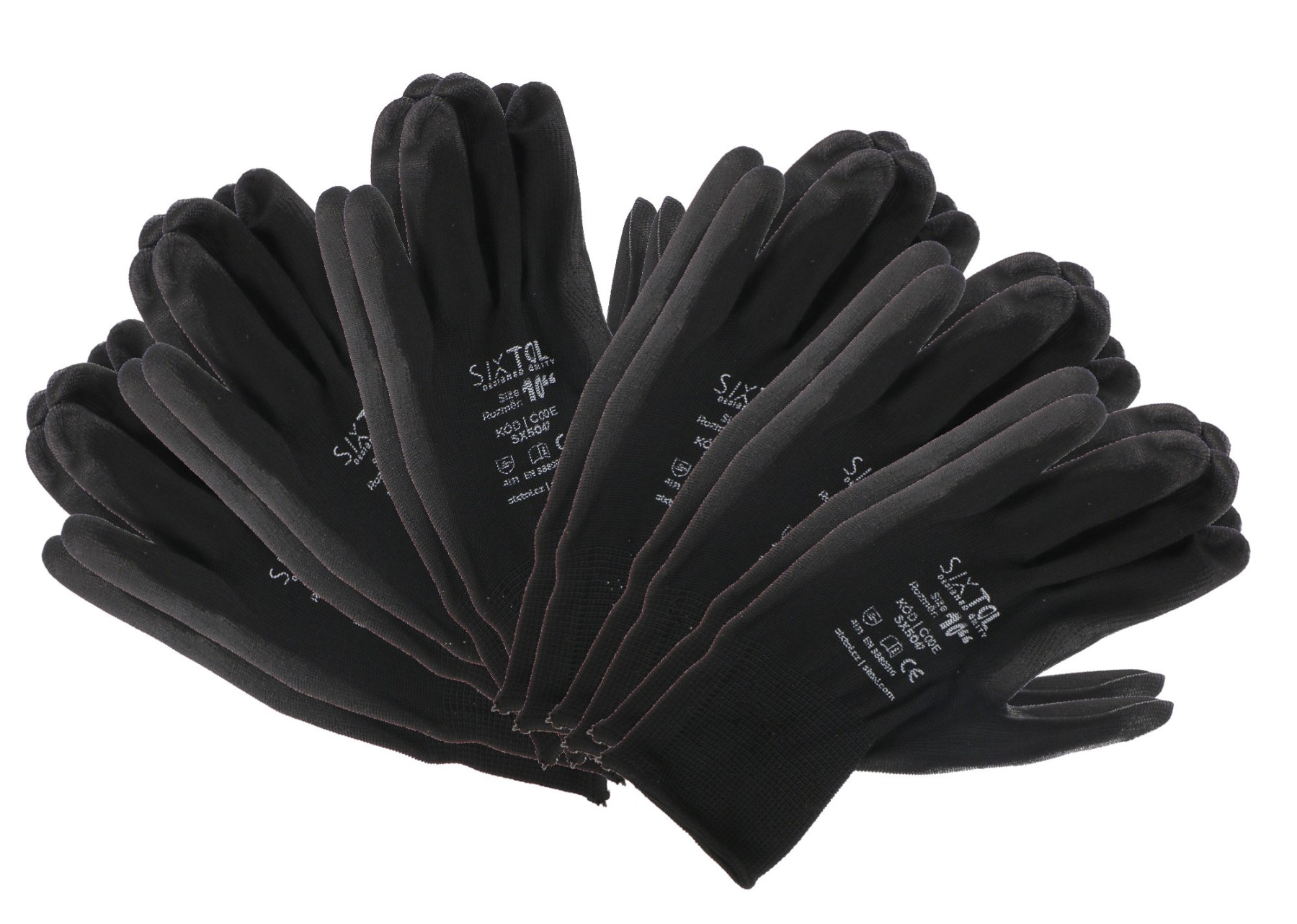 Gants de travail en polyester partiellement enduits de polyuréthane SIXTOL GLOVE PE-PU 10, noirs, taille 10", 6 paires SIXTOL