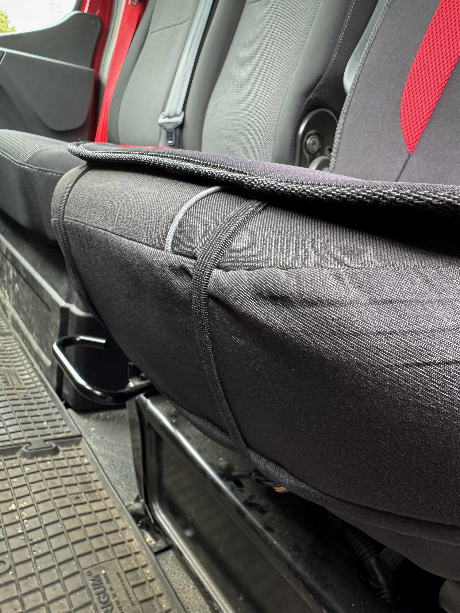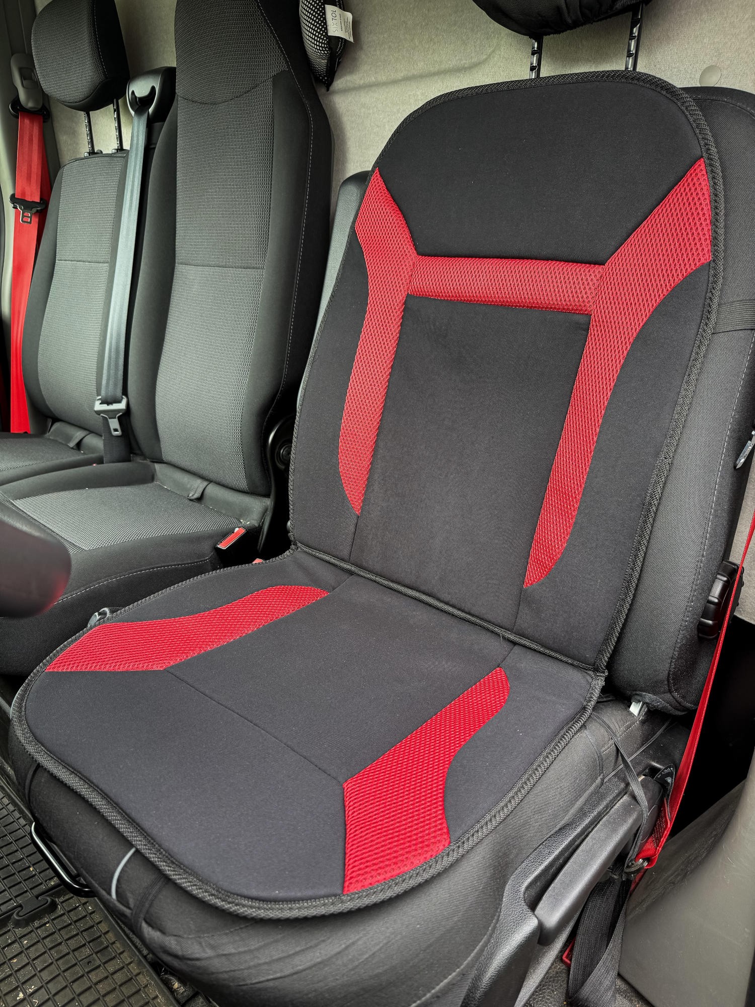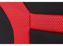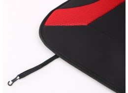 Housse de siège auto SIXTOL 3 La housse SIXTOL 3 est un accessoire élégant et pratique pour votre véhicule. Elle protège la sellerie d'origine de l'usure et améliore le confort de conduite. L'association du noir et du rouge, associée à un design sportif distinctif, confère à l'intérieur une allure moderne. Sa surface est composée d'une maille respirante et agréable, associée à un panneau textile coloré en sandwich. À l'intérieur, une mousse de 1 cm d'épaisseur (densité 20D) assure une assise moelleuse. Le dessous est doté d'un coussinet en caoutchouc antidérapant et d'un tissu non tissé noir pour une meilleure stabilité. La fixation se fait par des sangles élastiques et des crochets, pour une installation et un retrait rapides. Cette housse convient à la plupart des sièges avant courants.