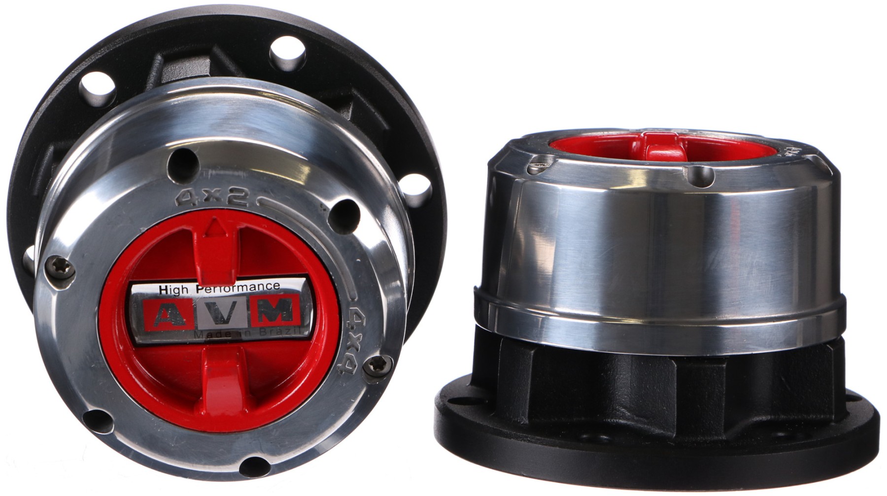 Jeu de 2 moyeux libres manuels de la plus haute qualité de la marque AVM, adaptés aux véhicules routiers et tout-terrain. Grâce à une construction massive en acier et un traitement par peinture époxy, ils résistent aux conditions extérieures extrêmes. Les composants internes sont usinés avec précision. Les modèles HP (High Performance) sont conçus pour des charges élevées. Les moyeux peuvent être utilisés avec des roues de plus de 33 pouces.