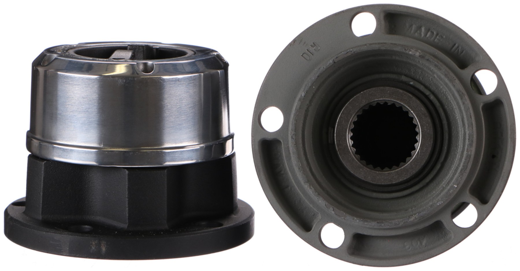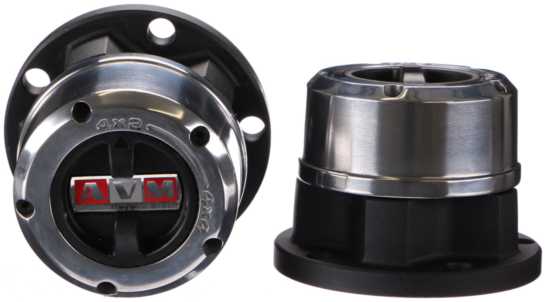 Ensemble de 2 moyeux manuels unidirectionnels de haute qualité de la marque AVM, adaptés aux véhicules ordinaires et tout-terrain. Grâce à une construction en acier massif et un revêtement en peinture époxy, ils résistent aux conditions extérieures extrêmes. Les composants internes sont usinés avec précision.