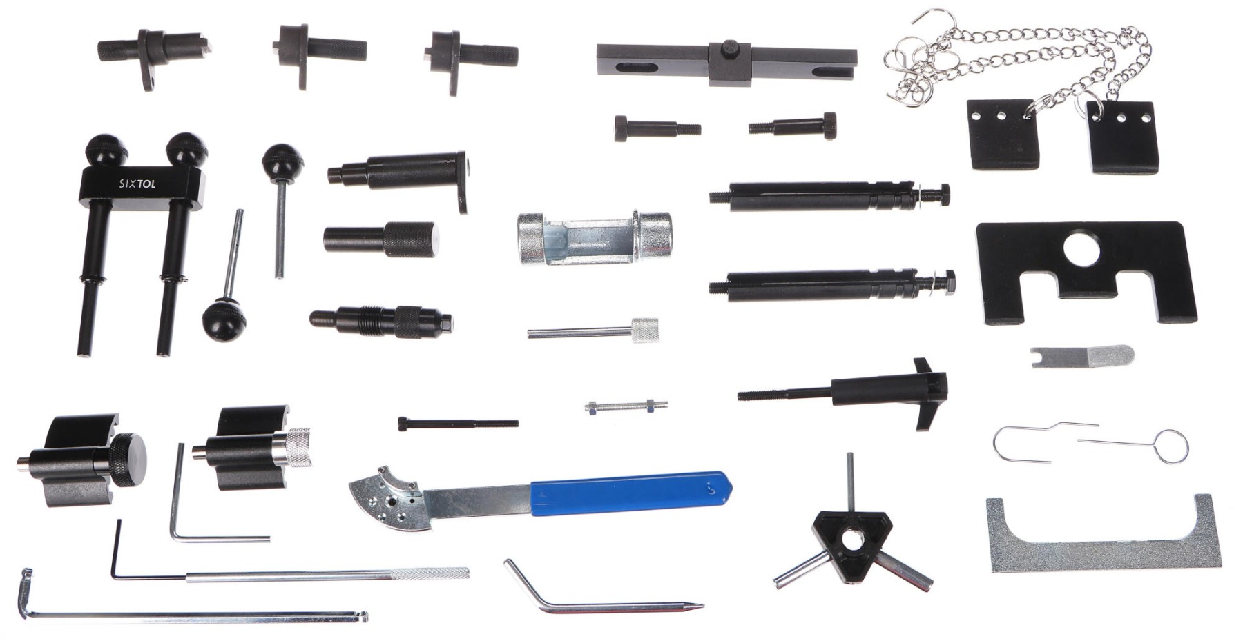 Outil de calage pour moteurs diesel/essence MECHANIC ENGINE TIMING 34, VAG TDI, 34 pièces SIXTOLLe coffret universel MECHANIC ENGINE TIMING 34 contient 34 outils spéciaux pour le blocage des vilebrequins et des arbres à cames, facilitant ainsi la réparation des systèmes de distribution. Grâce à sa large compatibilité, ce coffret est compatible avec la plupart des moteurs Audi, VW, Škoda et Seat. Il contient également des clés spéciales pour tendeurs de courroie et des outils pour la position d'entretien du radiateur ou du masque. Ce coffret est idéal pour les ateliers de réparation automobile et les mécaniciens professionnels.