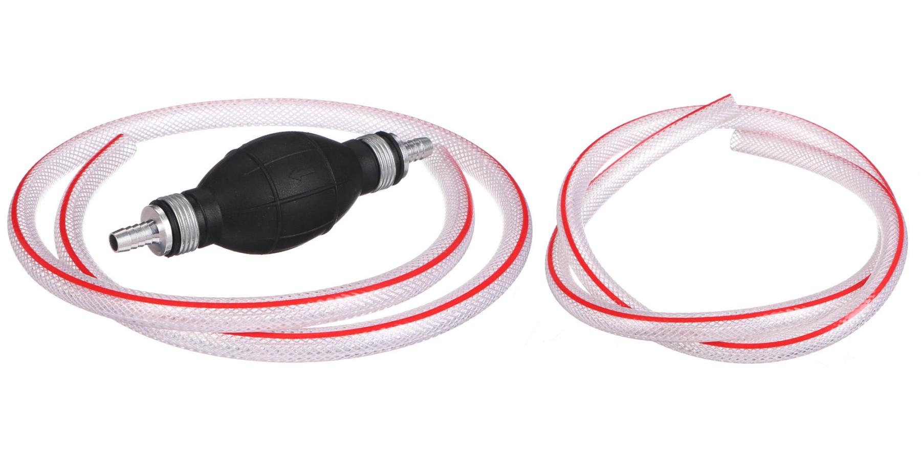 Pompe manuelle/pompe de transfert de carburant SIXTOL, KIT 10, 10 mm + 2 tuyaux de 1 mKit pratique de pompe manuelle ou de pompe de transfert de carburant avec tuyaux de 2 mètres SIXTOL, pour tuyaux de carburant de 10 mm de diamètre intérieur. Cette pompe manuelle est utilisée pour la vidange de carburant, le transfert de liquides tels que l'huile, l'eau et même la bière. Fabriquée en caoutchouc et aluminium de qualité, elle garantit une utilisation durable et sans problème. Elle est équipée d'un clapet anti-retour qui empêche le reflux du liquide, facilitant ainsi son contrôle. Des flèches sur la pompe indiquent le sens d'écoulement du liquide.