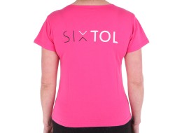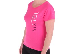 t-shirt femme à manches courtes de couleur rose avec le logo SIXTOL sur la poitrine et le dos. Le t-shirt est fabriqué